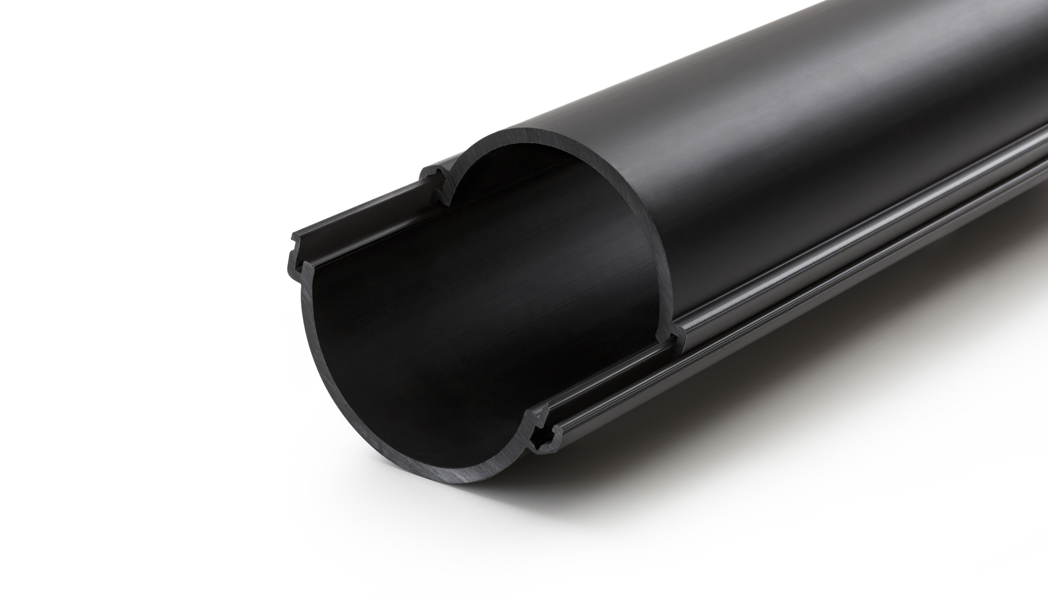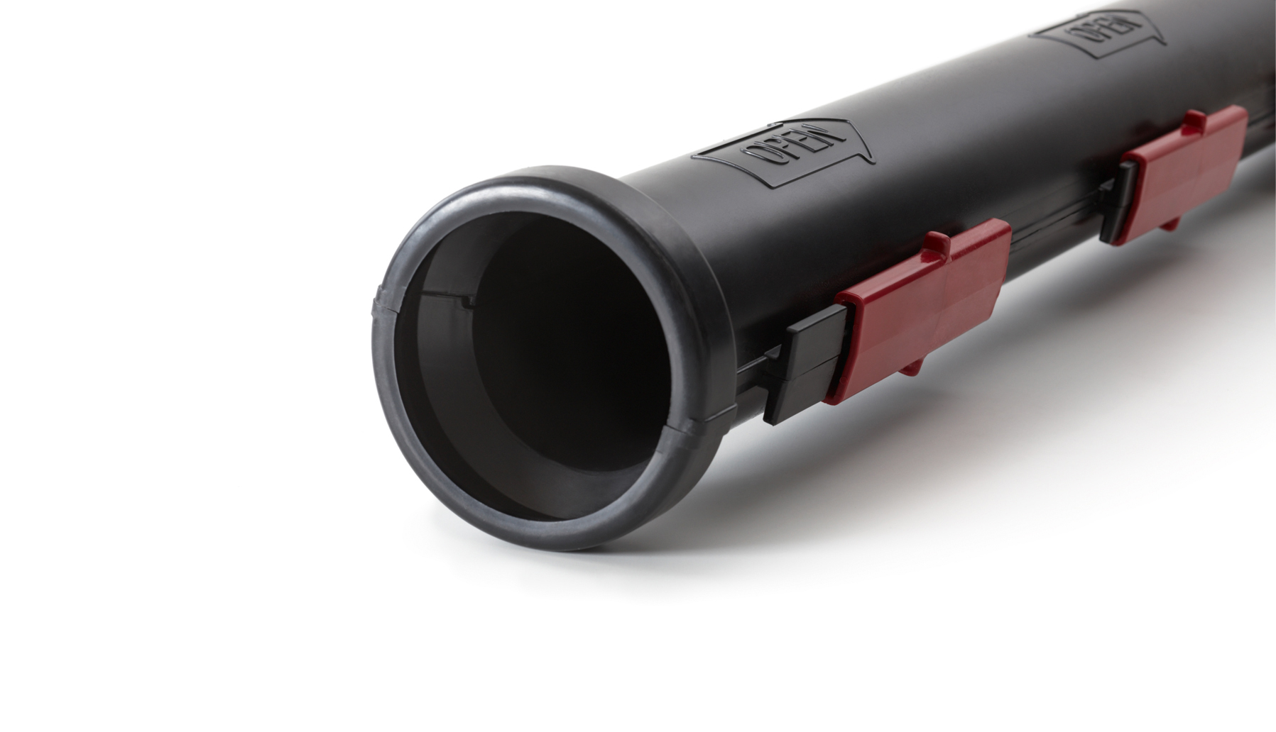 Unsere Rohrhalbschale ist so konstruiert, dass der Verschluss außerhalb liegt und dadurch der Innendurchmesser von 110 mm ohne Maßeinschränkung genutzt werden kann. Die Halbschale kann somit wie ein Pflaster über das defekte Kabelschutzrohr geklemmt werden. Kein Heraussägen des beschädigten Rohrabschnitts notwendig!